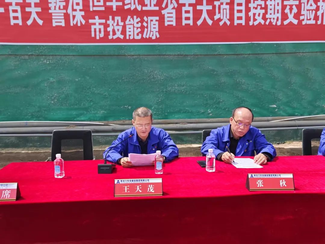 6月15日上午9時(shí),牡安集團(tuán)省百大項(xiàng)目按期交驗(yàn)推進(jìn)大會在恒豐紙業(yè)特種涂布紙項(xiàng)目場區(qū)內(nèi)順利召開。此次大會由副總經(jīng)理劉群主持,集團(tuán)總經(jīng)理張秋、副總經(jīng)理王天茂、張新福、杜鳳艷、集團(tuán)總部各部門主要負(fù)責(zé)人及本埠內(nèi)各項(xiàng)目部成員出席會議。