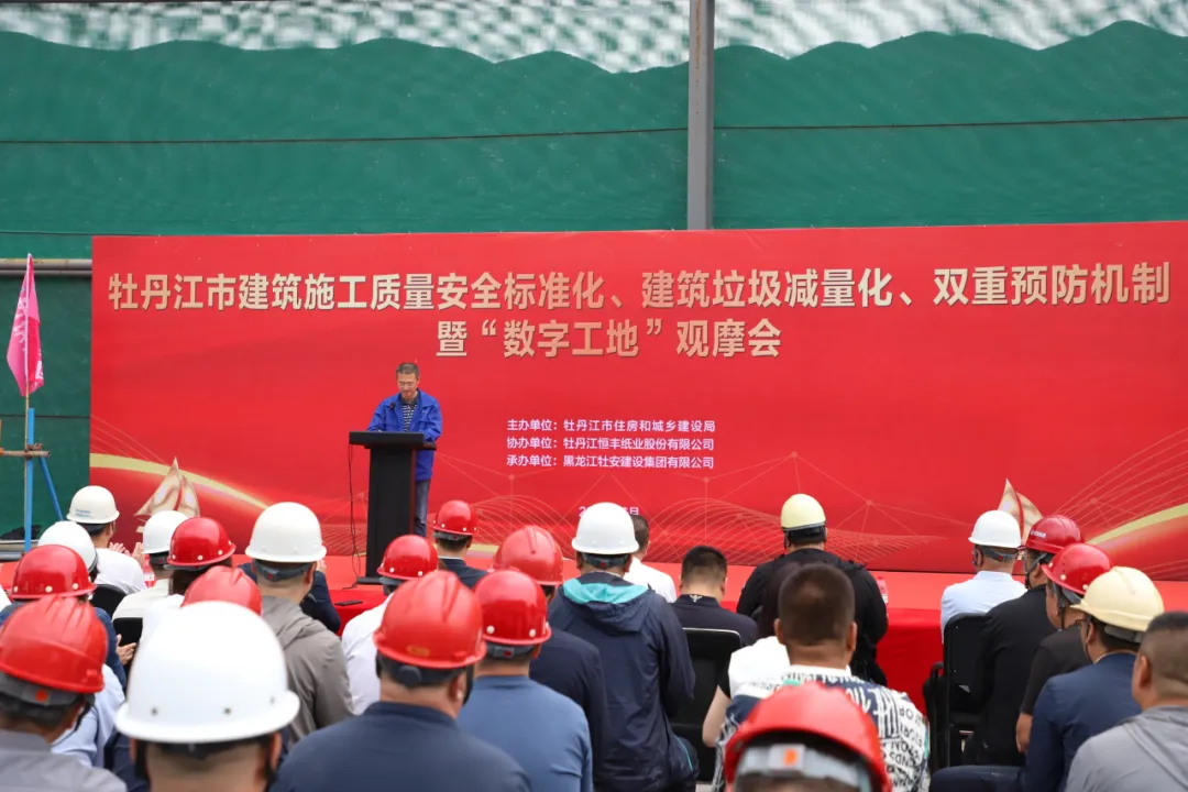 6月21日,由市住房和城鄉(xiāng)建設(shè)局主辦,黑龍江牡安建設(shè)集團承辦的“牡丹江市建筑施工質(zhì)量安全標(biāo)準(zhǔn)化、建筑垃圾減量化、雙重預(yù)防機制暨數(shù)字工地觀摩會”在牡安集團承建的恒豐紙業(yè)項目隆重舉行。市住建局副局長畢傳鵬、市工程質(zhì)量技術(shù)服務(wù)中心主任孫勇、黑龍江牡安建設(shè)集團董事長、總經(jīng)理張秋以及市住建局、各縣(市)、開發(fā)區(qū)住建局、質(zhì)量安全中心(站)的有關(guān)領(lǐng)導(dǎo)、市區(qū)在建項目的各位同仁參加了本次活動。